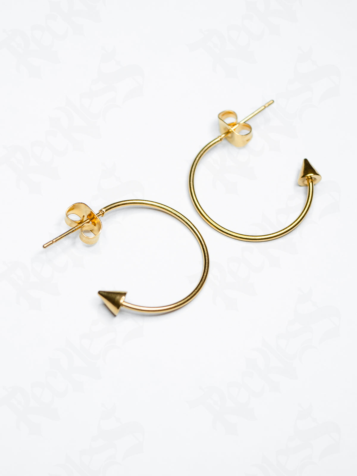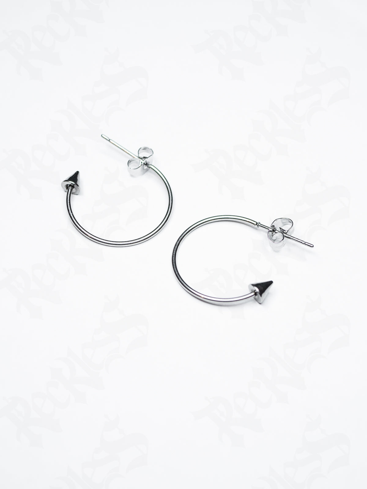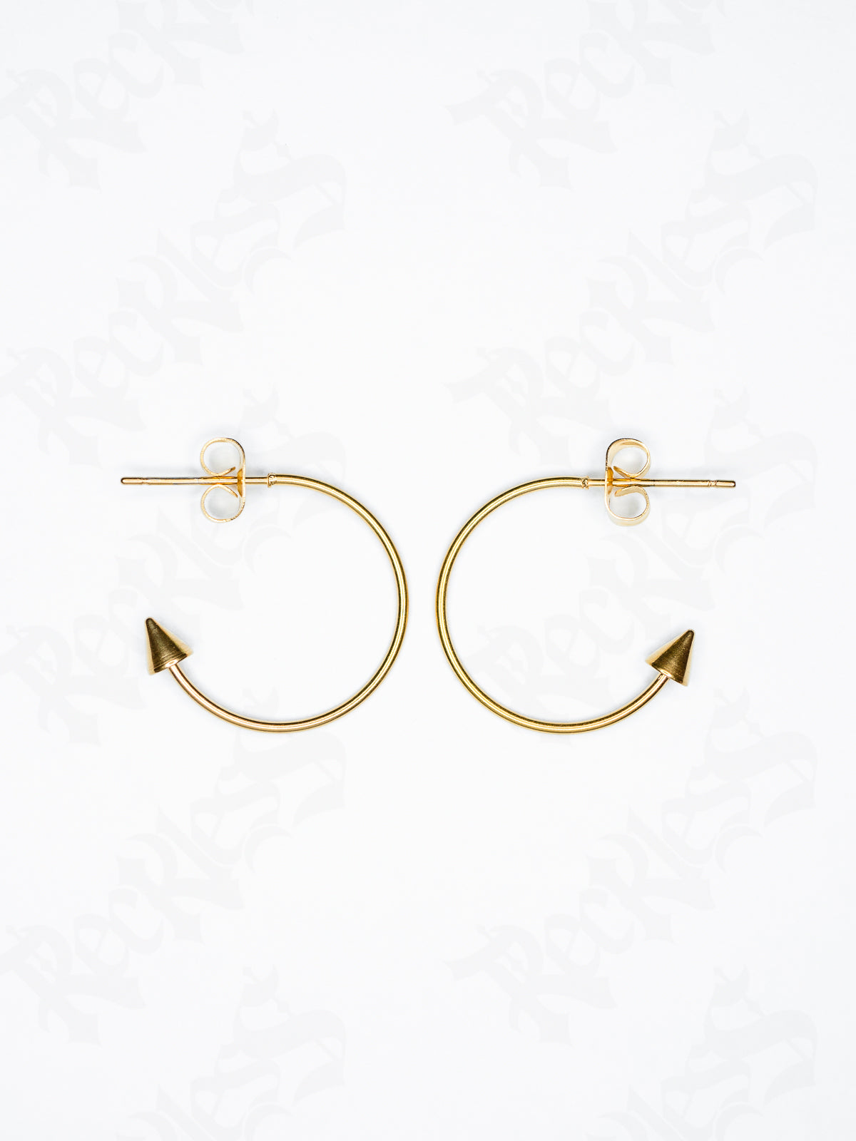 Les boucles d'oreilles créoles à pics de 20 mm sont disponibles en argenté et en doré.