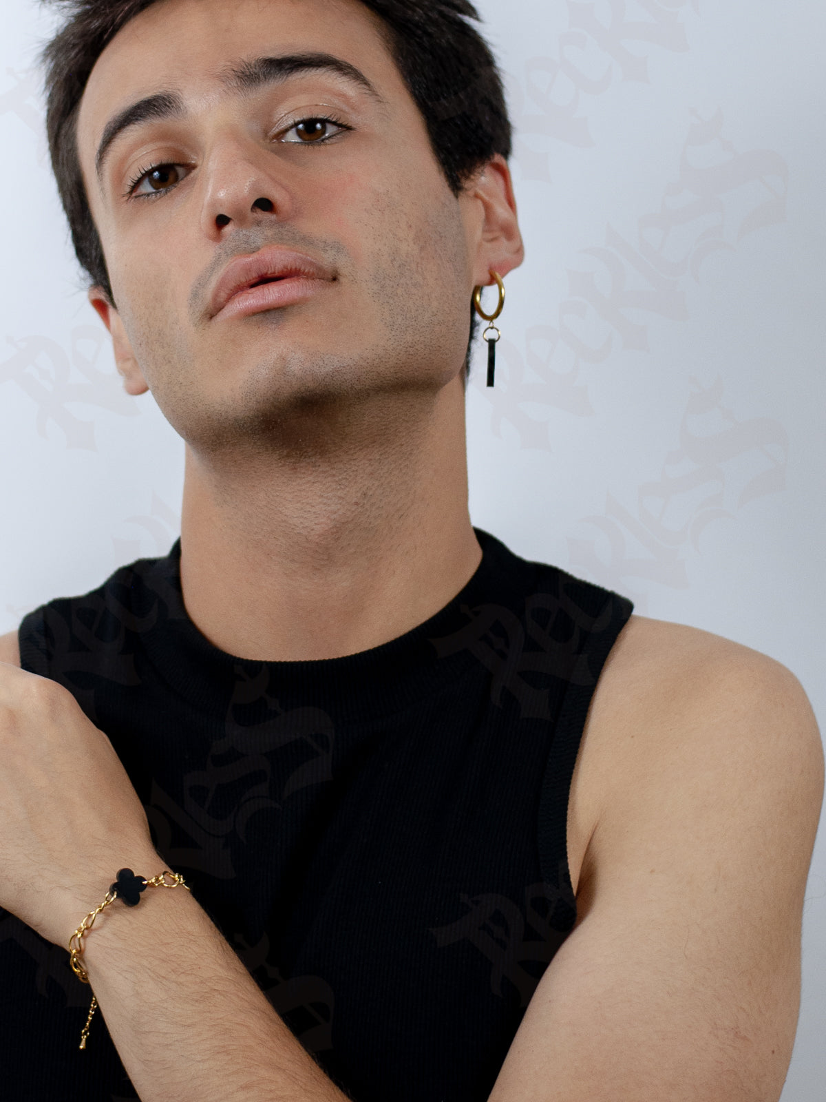 Le bracelet Trèfle fait partie d'une collection assortie audacieuse comprenant un collier et des boucles d'oreilles - parfait pour un look unique et cohérent.