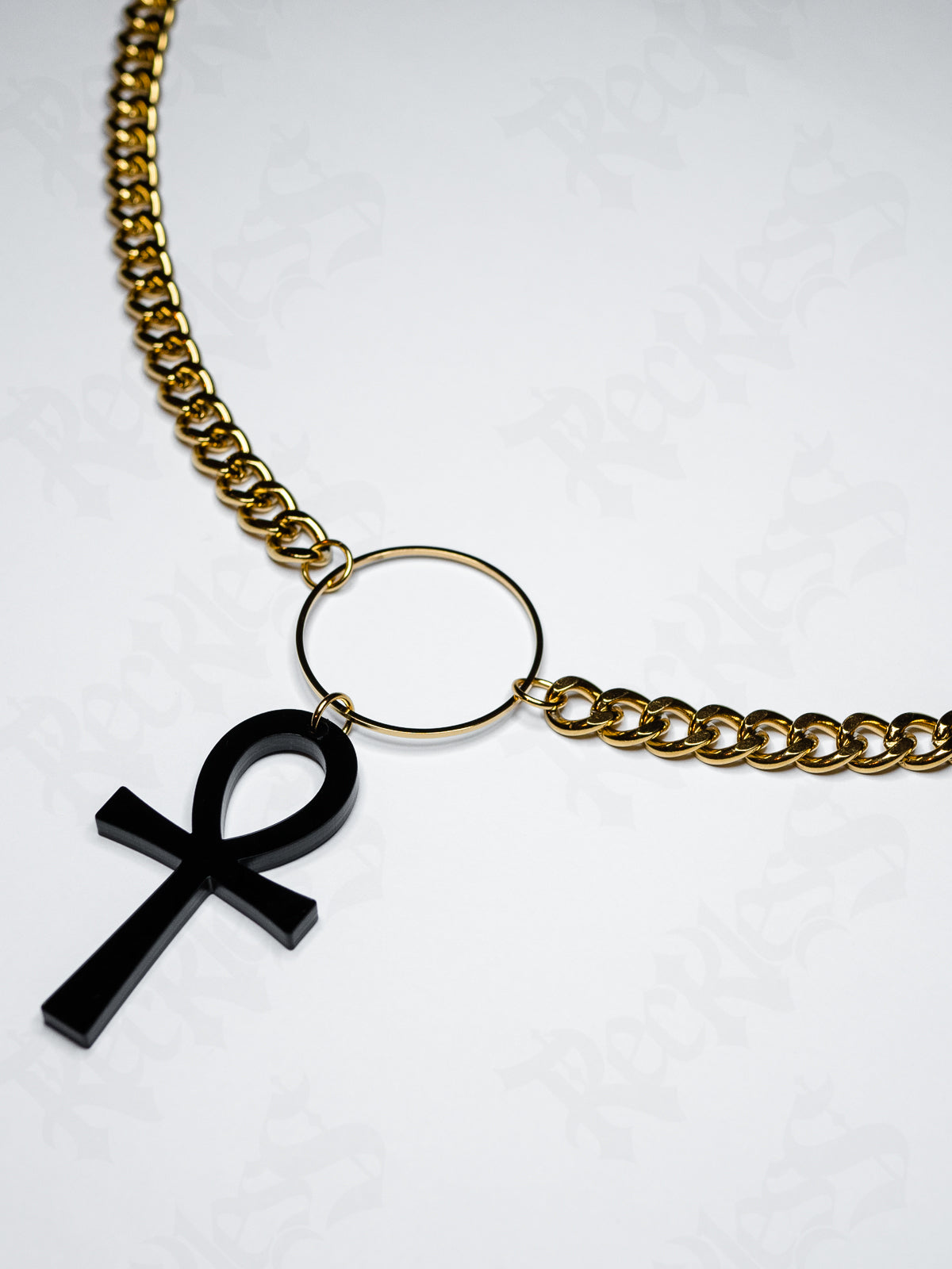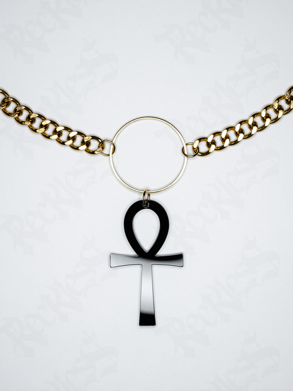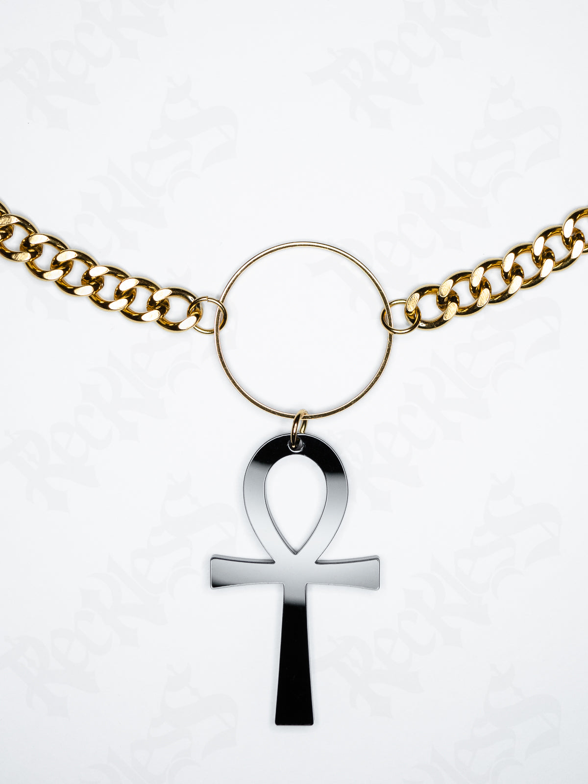 The Ankh necklace is part of a bold matching collection featuring a bracelet, choker, earrings and Mix and Match earrings - perfect for a unique, cohesive look.