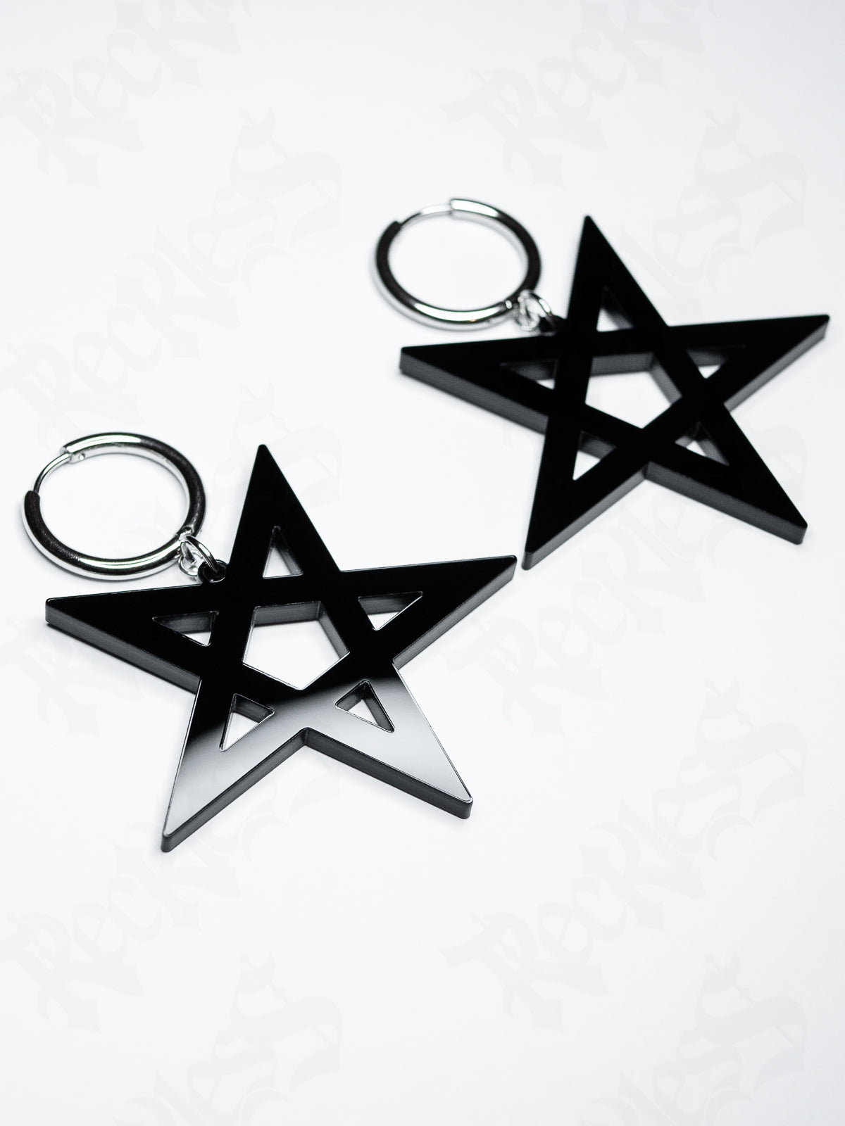 The Pentagram earrings are part of a bold matching collection featuring a necklace and Mix and Match earrings - perfect for a unique, cohesive look.